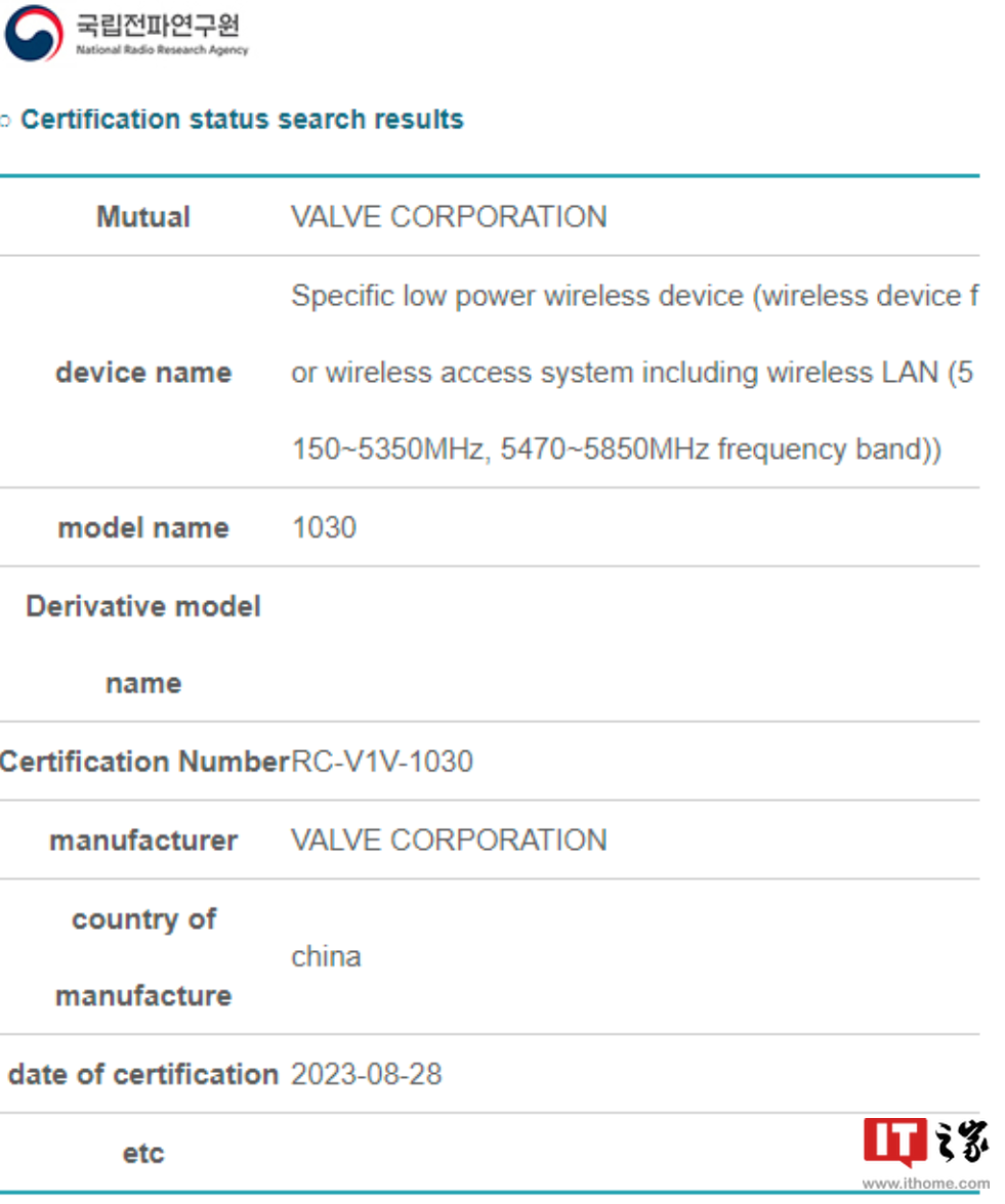 本站 9 月 8 日消息,V 社的硬件野心并没有随着 Steam Deck 而结束,近日,韩国无线电研究机构已认证了 V 社的一款“低功耗无线设备”,型号为“RC-V1V-1030”。