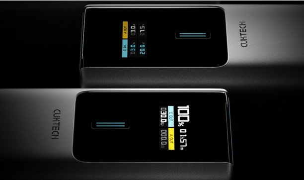 这款充电宝的体积非常小巧,与士力架巧克力差不多大小,长度和宽度分别为143mm和45mm,重约287g。不仅如此,它的正面还配置了TFT彩屏,可以实时显示电池电量、功率、电压和电流等多种信息,而外壳采用了时尚的钛灰色和亲肤喷涂处理。