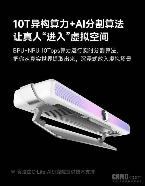 据CNMO了解,AR体感运动主机连接家里的电视即可进入运动虚拟世界。在10T异构算力和AI分割算法的加持下,可以把用户从真实世界提取出来,沉浸式放入虚拟场景。该机还配备12核双芯和超广角镜头,可精准捕捉全身动作。而且,起走的是纯视觉动作捕捉路线,不用穿戴其他涉笔即可快速进入运动状态。