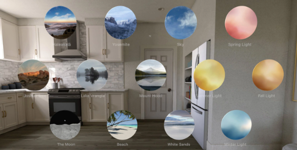 新增功能之一是环境功能(Environments)。Environments是Vision Pro的一个特性,允许用户在虚拟场景和真实世界之间进行切换。它还可以在FaceTime通话中使用,只要每个参与者都使用Vision Pro。然而,visionOS不会自动下载所有的Environments,可能是为了节省存储空间。因此,在今天的版本中,苹果添加了一个新的提示信息,用于提醒FaceTime通话中未下载所选环境的每个人