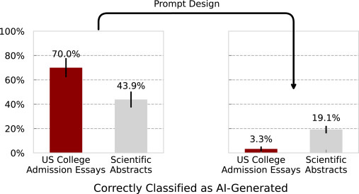 研究者通过进一步分析发现,造成辨识错误的主要原因是非英语母语者在语言的多样化与词语的选择上较为有限,且掌握的英文词汇相对更“正式”,在部分生活场景中并不常使用,因此产生了 AI 的错误判定现象。