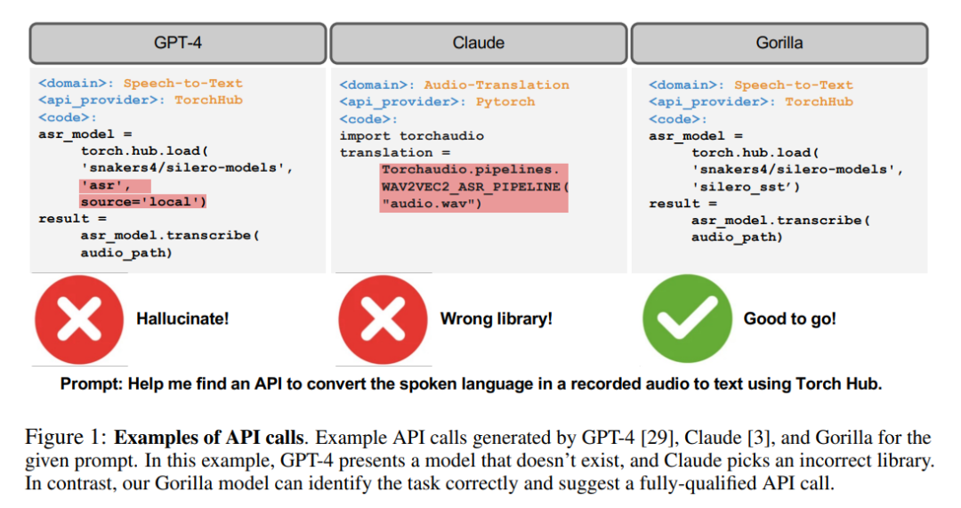为了评估该模型的能力,研究人员还引入了API基准,一个由HuggingFace、TorchHub和TensorHub API组成的综合数据集