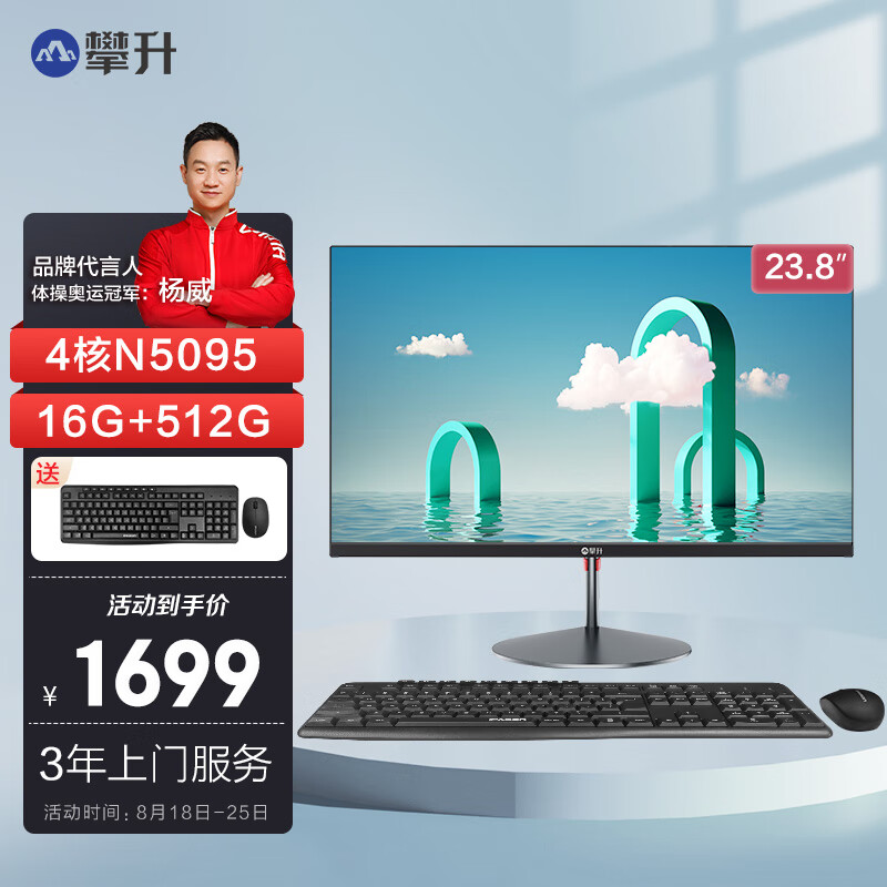 京东攀升 暴风龙 K1 23.8 英寸办公商用家用台式一体机电脑(11 代 4 核 N5095 16G 512G 双频 WiFi 无线键鼠)2023 款 1699 元直达链接攀升商睿 3