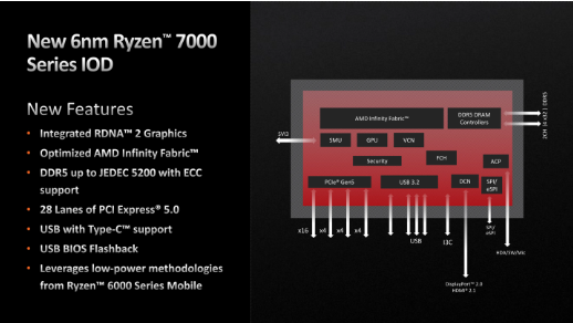 然而,AMD锐龙8000系列桌面CPU可能会保留现有的IOD芯片设计。这意味着新一代锐龙8000处理器可能仍将具备28个PCIe Gen 5通道、内存控制器和USB功能