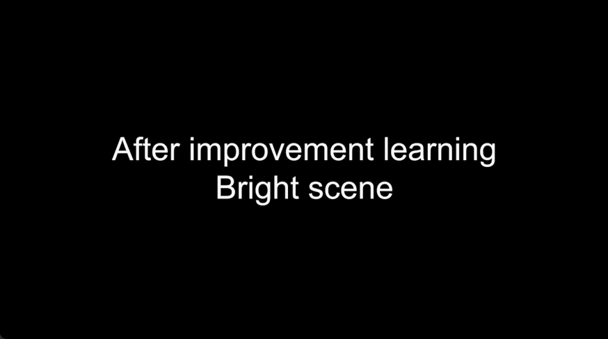 在明亮场景下有了改进学习之后,蓝车很好地适应调整,始终追随目标红车。