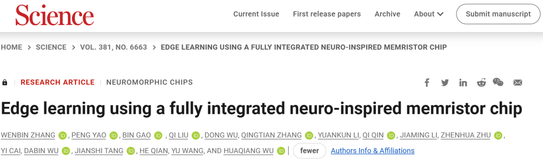 论文《Edge learning using a fully integrated neuro-inspired memristor chip》如下。