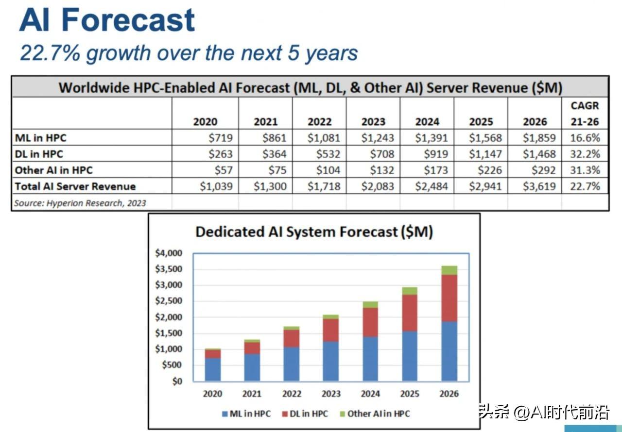 Hyperion Research在汉堡发布了其年度ISC HPC(高性能计算)市场现状更新,并分享了一项预测,即未来5年,全球支持HPC的人工智能服务器复合年增长率将为22.7%。