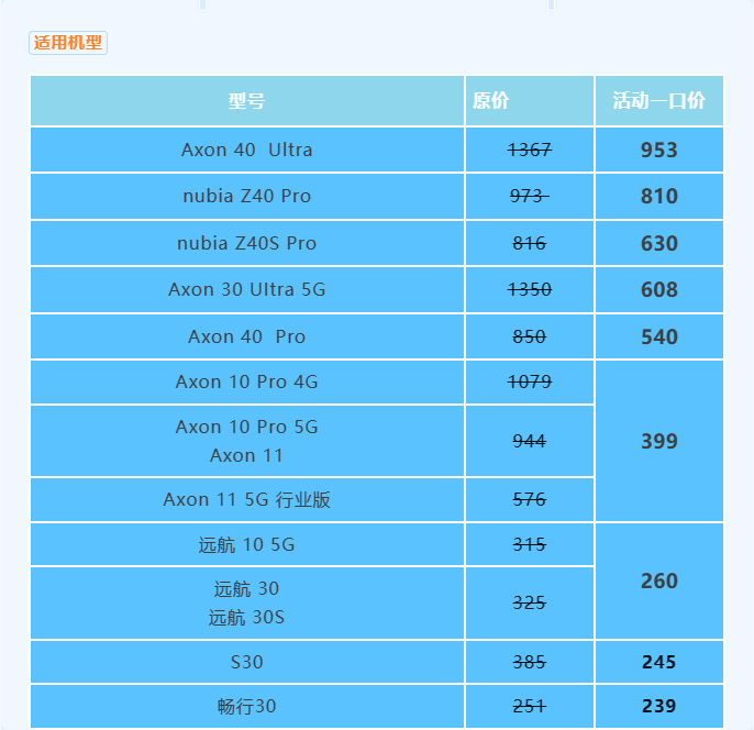 Axon 40 Pro / Axon 40 Ultra / nubia Z40S Pro / nubia Z50 Pro/ nubia Z50 Ultra / nubia Z50S Pro 手机用户在中兴终端客服小程序-保障服务购买延保、碎屏保、电池延保享受服务有效期延长:(除 nubia Z50S Pro 一年两次碎屏服务和镜壳守护服务)