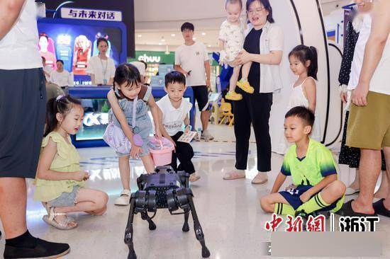 在展览中,家长和孩子们能够全身心地感受到人工智能的魅力。他们可以与虚拟人物爱因斯坦的“时间穿越者”进行对话,与AI下棋机器人对战,还能欣赏机器狗的握手和作揖表演……