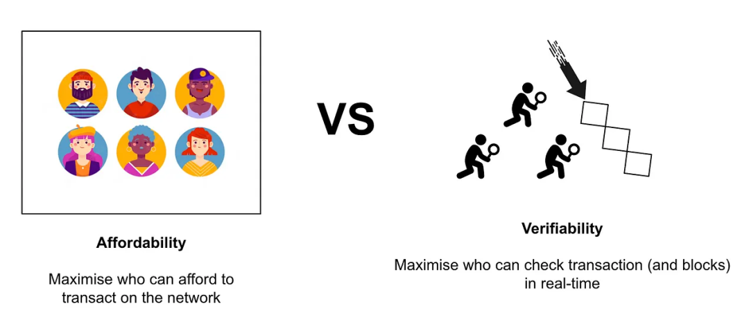 并不是说现代区块链设计是错误的,但迄今为止,它们都未能像比特币或以太坊一样获得同样的关注。在我们看来,其中一个突出原因是这种基本权衡。这是比特币区块大小之争的核心,社区最终决定优先考虑谁可以验证网络的完整性,而不是长期的可负担性。