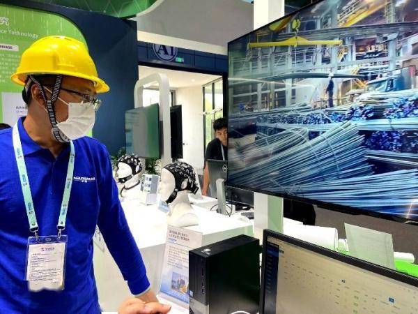 2023中关村论坛上工作人员展示一款基于脑机接口技术的施工人员安全数字管理系统。新华社记者 魏梦佳 摄