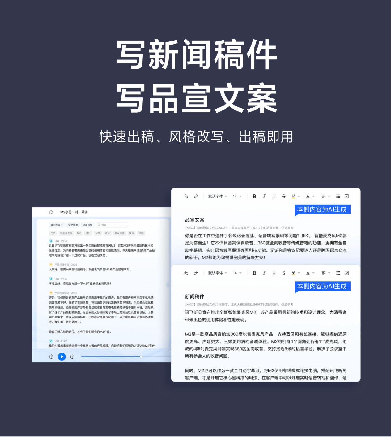 性能表现上,讯飞听见会写的AIGC生成速度、效率、内容丰富性等得到了大幅提升。此外,讯飞宣布集团内部员工已全面开始免费使用讯飞听见会写,助力日常办公中文件内容处理效率。