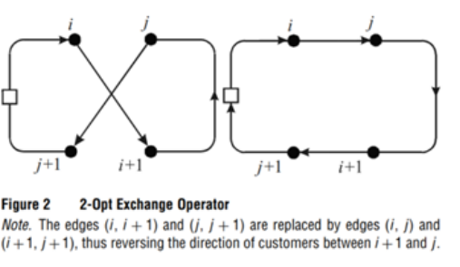 improvement heuristic用于对初始解进行改进提升,常用的方法如下图所示。基本思想是通过交换点、边的位置或顺序,常作为元启发式算法中构造邻域解的中间算子,再嵌套迭代不断优化求解效果。