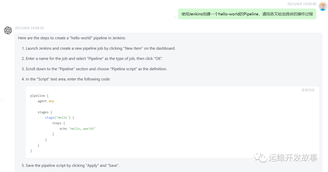 还比如我叫它帮我写一个创建 pipeline 的步骤。