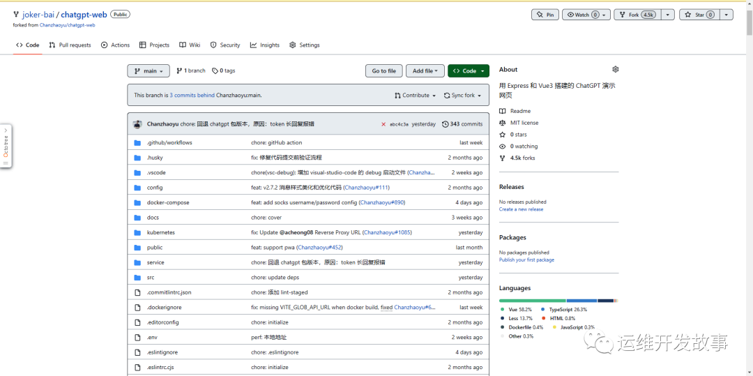 将https://github.com/Chanzhaoyu/chatgpt-web项目 fork 到自己的仓库中。