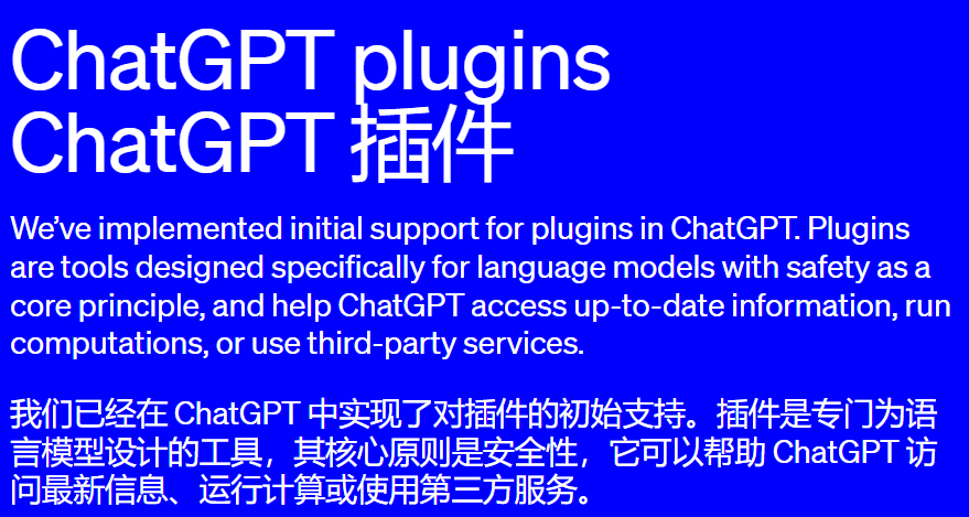 该 OpenAI 官网在一篇博客文章中表示,这些插件是“专门为语言模型设计的工具,以安全为核心原则,帮助 ChatGPT 访问最新信息、运行计算或使用第三方服务。”