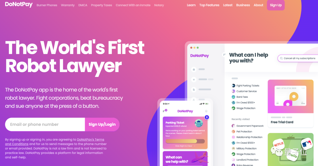 DoNotPay来自美国,2015年成立。