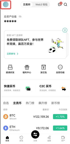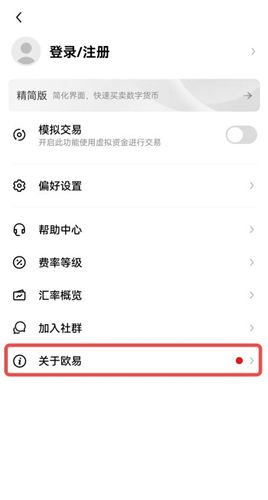 2、您还可以点击APP首页左上角头像按钮-【关于欧e虚拟货币交易平台】。