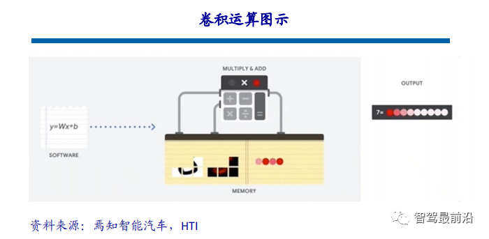当今自动驾驶领域所运用的视觉识别算法,基本上都基于卷积神经网络,视觉算法的运算本质上是一次次的卷积运算。这种计算并不复杂,本质上只涉及到加减乘除,也就是一种乘积累加运算。但这种简单运算在卷积神经网络中是大量存在的,这就对处理器的性能提出了很高的要求。