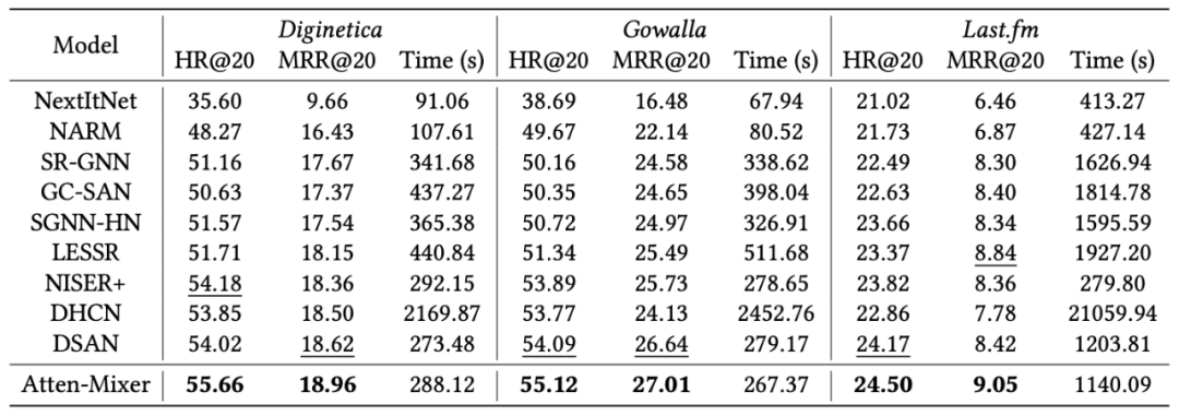 实验结果表明,Atten-Mixer 在三个数据集上都在准确性和效率方面超越了基准方法。