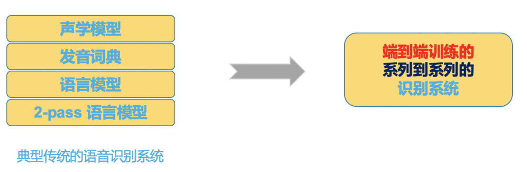 代表性开源工具及社区 | HTK, Kaldi | Espnet, Wenet, DeepSpeech, K2等 |