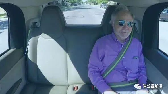 图 2-3 盲人Steve Mahan乘坐google firefly无人驾驶汽车