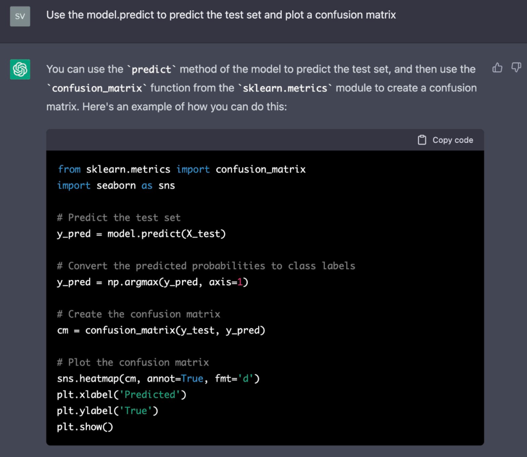 然后来到了评估最终模型阶段,作者让 ChatGPT 使用测试集编写代码。