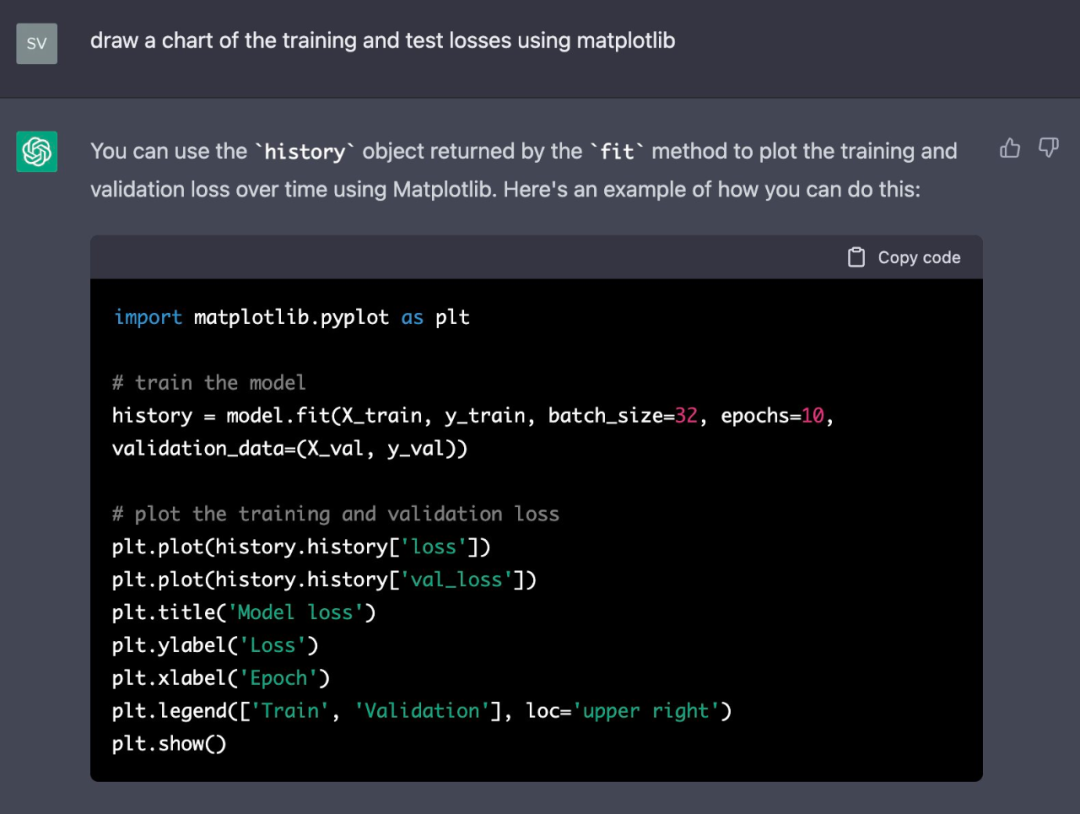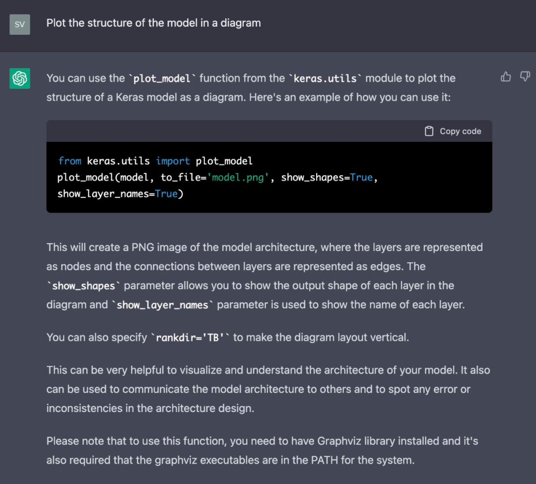 构建模型时,查看其结构也是必要的。如果用这个问题去问 ChatGPT ,回复是: