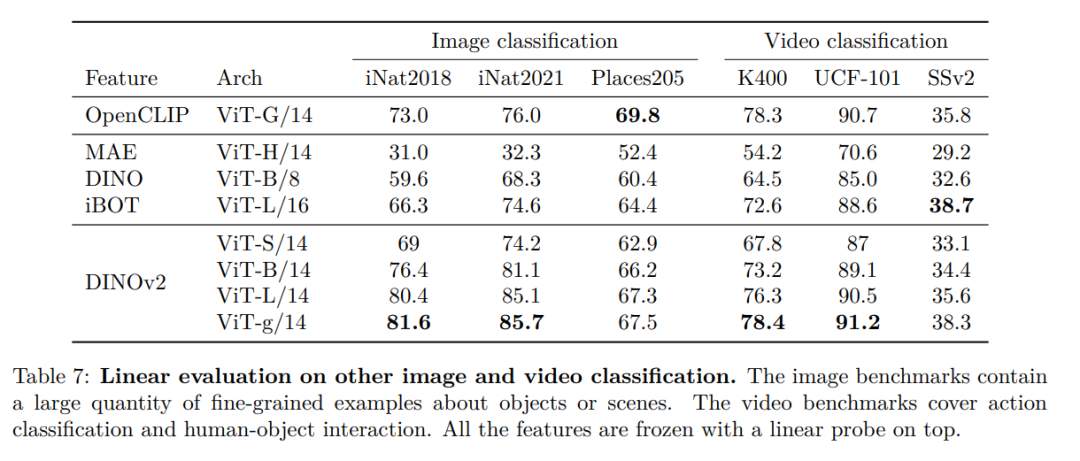 - DINOv2 的预训练版本已经可用,并可以在一系列任务上媲美 CLIP 和 OpenCLIP。