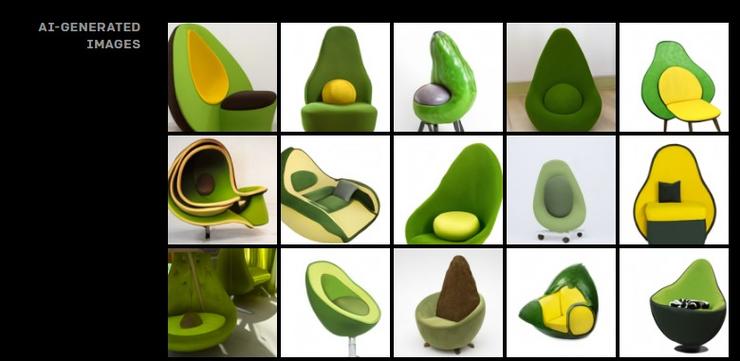 图:AI接收信息后生成的“牛油果形状扶手椅”图片