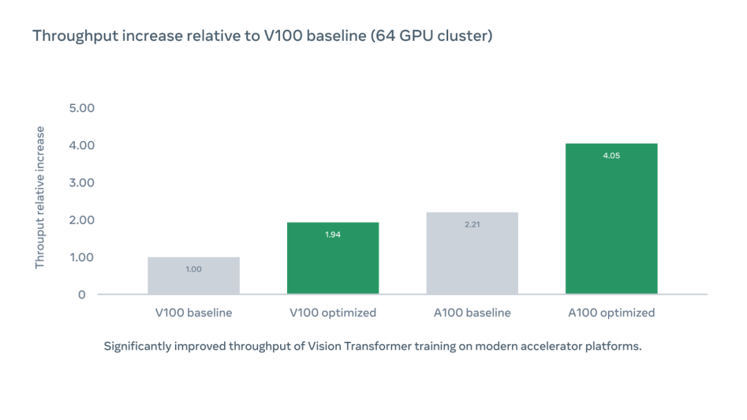 将 ViT 训练中可实现的吞吐量翻倍可以有效让训练集群规模翻倍,提高加速器利用率直接减少了 AI 模型的碳排放。由于最近大模型的发展带来了更大模型和更长训练时间的趋势,这种优化有望帮助研究领域进一步推动最先进的技术,缩短周转时间并提高生产力。