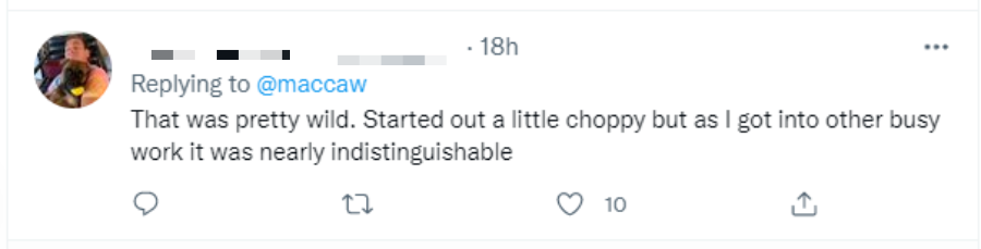 但总的来说, podcast.ai 的效果已经相当接近真人,Clearbit 公司联合创始人 Alex MacCaw 表示:“这真的令人非常兴奋!”