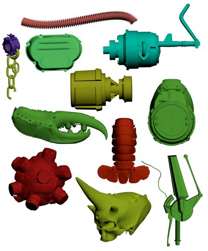 实现这一点的一个好方法是使用kitbashing技术,Kitbashing最初是由Industrial Light & Magic创建的,作为为星球大战电影创建飞船形状和细节的一种有效方式。这种技术允许你使用有限的3D模块而变得富有创造力。每次创建了新的雕塑的时候,建议把所有元素都保存到一个库里,然后用这些保存的元素形成一些有趣的形状,用作为创建角色盔甲的基础。