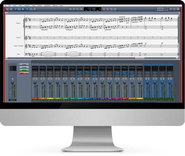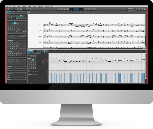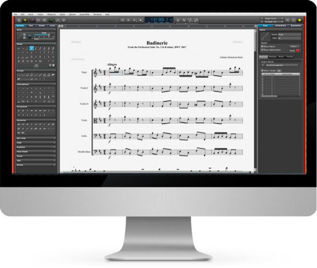 Overture的独立窗口界面让所有的编辑工具 和符号调色板都变得触手可及,所以你可以把 时间用在创作音乐上,而不是用来搜索菜单和对话框。