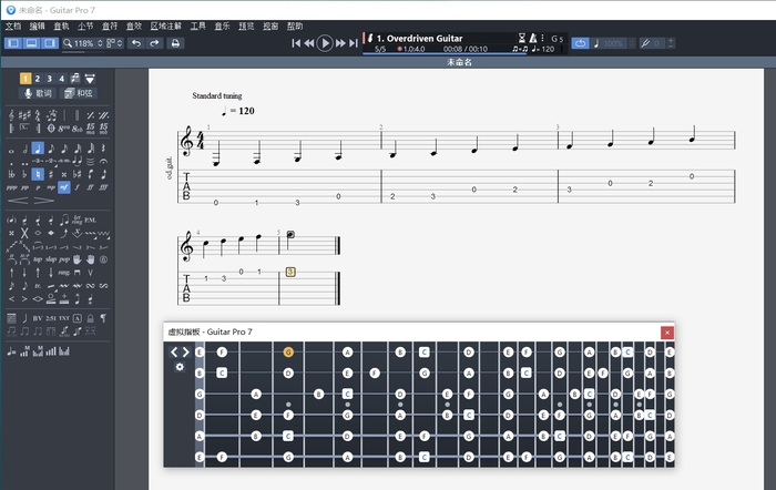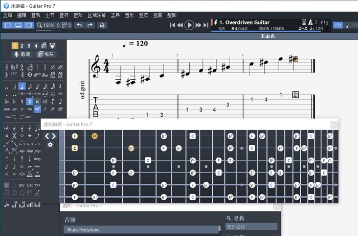 图片2:Guitar Pro中的C大调音阶图示