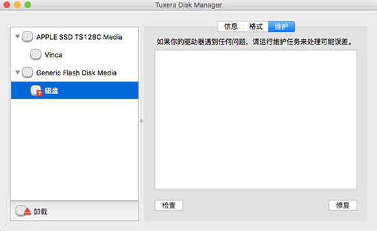 在Tuxera NTFS中有一个Disk Manager(磁盘管理)组件,它可以帮助Mac对磁盘进行格式转换、检查修复、挂载等操作,下面正软小编来对这款组件进行更详细的了解。