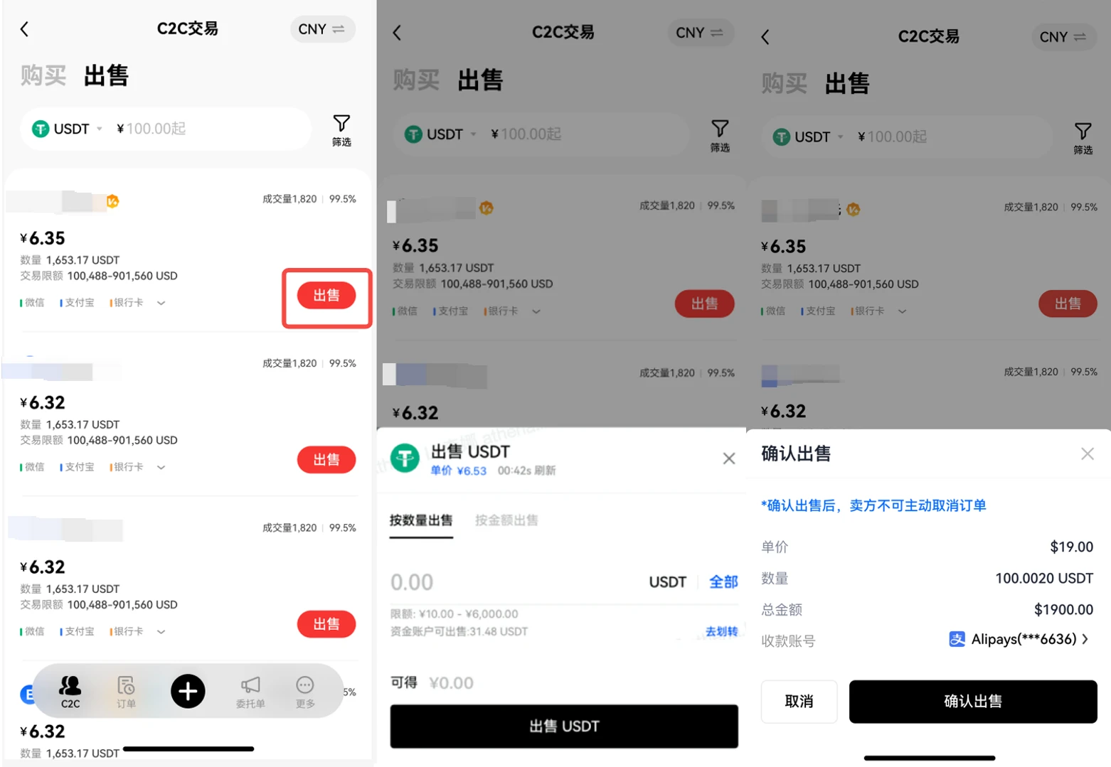 (3)卖币:输入您想要出售的数字资产数量或金额,确认无误后,点击【出售XXXX】。选择收款账号,点击【确认出售】。
