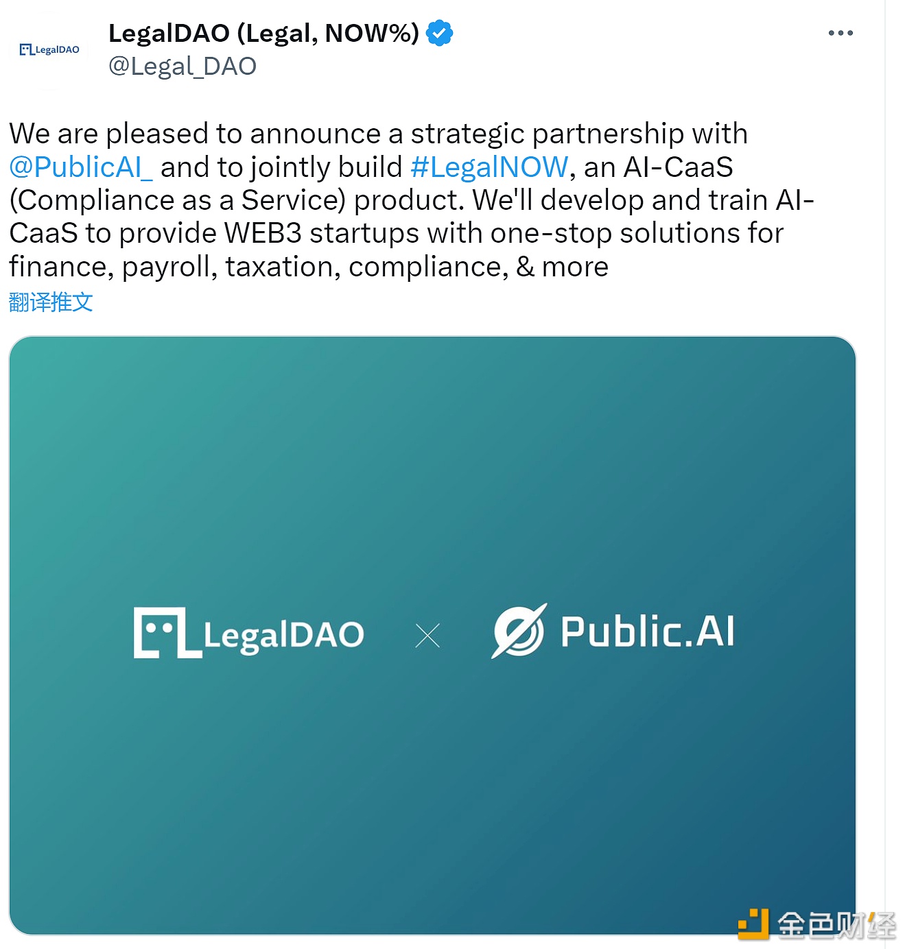 Lgal DAO与Public AI达成战略合作巴适游戏网• 2025-09-06 23:10:51•链百科•阅读 1079 下载成为新用户,专享前3天赚取最高30%的年收益率 4月28日消息,Legal DAO与Public AI达成战略合作,将共同推出法律界的GPT Legal NOW。Legal DAO致力于打造全球WEB3法律生态,社区由来自全球5大洲的3000多位社区成员组成,多数为法律背景资深从业者。 Public AI是一个Web3AI数据标注平台,将通过Label-To-Earn机制提供高质量训练数据标注,其教授和博士团队也将为Legal NOW提供专业AI算法设计和模型训练服务。欧易安卓下载:立即前往欧易IOS下载:立即前往注册领取新手礼包!交易手续费返现:20%! 标签: 两家SPAC公司前CFO因挪用500万美元投资加密货币及股票获刑3年 上一篇2025-09-06正规数字货币交易平台交易所电脑版(极速版本V6.16.0)_正规数字货币交易平台交易所官网电脑端下载下一篇 2025-09-06相关推荐 Pi币登录指南:图文教程,防掉队!信息化时代,别掉队!Pi币登录全攻略2025-09-06 23:10:51816 币圈新手必读:涨跌规律与入门指南币圈新手入门指南2025-09-06 23:10:51833 AGRS发行总量多少?全面解析代币分配与价值AGRS 发行总量是多少?2025-09-06 23:10:51952 Peaq币2025价格预测:DePIN潜力爆发?Peaq (PEAQ) 2025年价格预测:未来发展如何?2025-09-06 23:10:511906 牛市顶峰Q4?比特币目标12万美元!Bitfinex 预测:今年第四季度见顶?2025-09-06 23:10:51952 CHZ币瑞士发行,欧洲杯或涨CHZ币概述2025-09-06 23:10:511438 幻藏是什么?蚂蚁链NFT平台深度解析数字藏品平台:幻藏(Magic Collection)2025-09-06 23:10:51508 2025虚拟币交易所Top10:安全平台终极指南2025年最安全的十大虚拟币交易所:你的理想交易平台在哪里?2025-09-06 23:10:511912