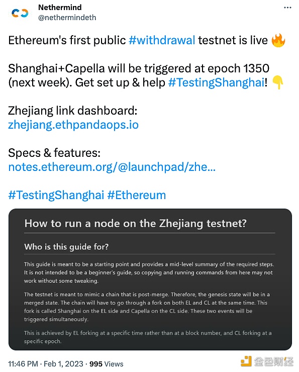 以太坊首个公共提款测试网Zhjiang已启动,下周将进行Shanghai Caplla升级巴适游戏网• 2025-09-20 22:14:42•链百科•阅读 1913 下载成为新用户,专享前3天赚取最高30%的年收益率 2月2日消息,据以太坊客户端开发商Nethermind消息,以太坊首个公共提款测试网Zhejiang已正式启动,预计下周(epoch 1350)将对该测试网进行Shanghai Capella升级。欧易安卓下载:立即前往欧易IOS下载:立即前往注册领取新手礼包!交易手续费返现:20%! 标签: 欧亿理财平台_正规数字货币交易平台正规的虚拟币平台V6.1.42 上一篇2025-09-20虚拟货币平台那些好用 排名前十的虚拟币交易软件下一篇 2025-09-20相关推荐 Pi币登录指南:图文教程,防掉队!信息化时代,别掉队!Pi币登录全攻略2025-09-20 22:14:42816 币圈新手必读:涨跌规律与入门指南币圈新手入门指南2025-09-20 22:14:42833 AGRS发行总量多少?全面解析代币分配与价值AGRS 发行总量是多少?2025-09-20 22:14:42952 Peaq币2025价格预测:DePIN潜力爆发?Peaq (PEAQ) 2025年价格预测:未来发展如何?2025-09-20 22:14:421906 牛市顶峰Q4?比特币目标12万美元!Bitfinex 预测:今年第四季度见顶?2025-09-20 22:14:42952 CHZ币瑞士发行,欧洲杯或涨CHZ币概述2025-09-20 22:14:421438 幻藏是什么?蚂蚁链NFT平台深度解析数字藏品平台:幻藏(Magic Collection)2025-09-20 22:14:42508 2025虚拟币交易所Top10:安全平台终极指南2025年最安全的十大虚拟币交易所:你的理想交易平台在哪里?2025-09-20 22:14:421912