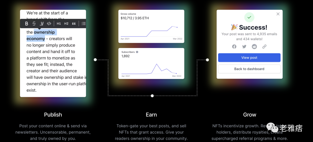 在这里,创作者能够直接向读者出售会员资格,使粉丝和支持者能够选择通过直接参与的创作来支持作者的newsletter。这是通过出售代币来实现的,一旦用户证明了所有权,他们就能在自己的电子邮件中收到newsletter。