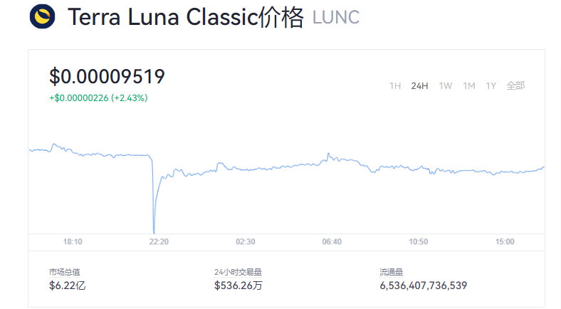 截止2022年8月10日下午16点57分,LUNC币今日最新价格为0.00009519元,想实时知道LUNC币最新价格,点击页面上的欧易okexapp下载,可以随时随地获取最新币价消息。