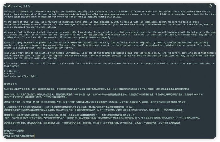 Bybit 在一份声明中称,该公司高度依赖于专业且快速的执行能力。但目前他们正在探索一种通过消除冗余职能、以建立一个更加小巧轻盈的敏捷团队,来提升总体效率的新方法。