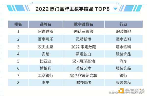 与此同时,数字藏品是元宇宙的基石,是元宇宙入门级应用的流量入口。越来越多平台正将数字藏品作为布局元宇宙的首选场景,也作为品牌营销的重要渠道。在iBox链盒数字藏品研究院近期发布的《“数藏 ”:中国数字藏品进入2.0时代》中,总结了2022年在中国通过发布数字藏品进行品牌传播的品牌TOP8:
