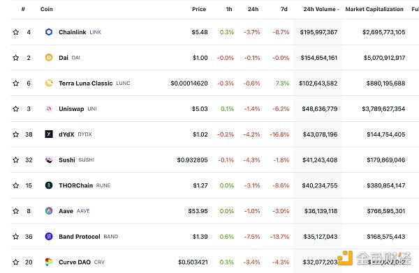 过去24小时去中心化交易所的交易量 数据来源:coingecko