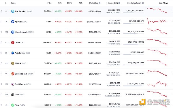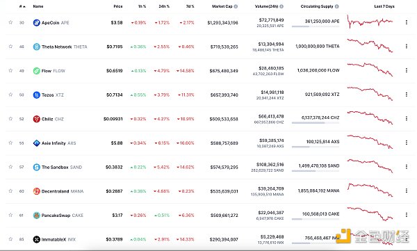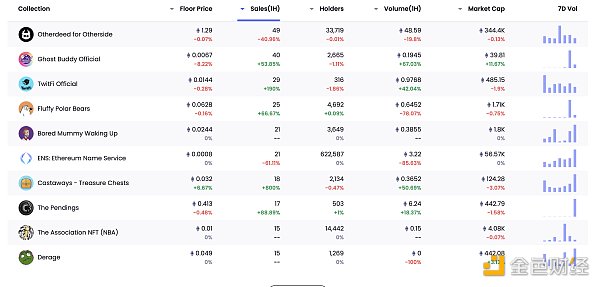 24小时NFT交易量、交易量前十项目 数据来源:Coinmarketcap