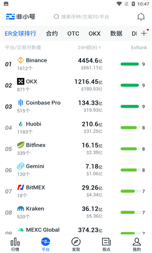 非小号app是一款十分专业,十分好用的一款虚拟币资讯app,是国内专注区块链数据资讯分析平台,汇集全球数字资产资源,拥有海量币种信息,提供专业的实时行情,趋势分析,资产记帐等服务。收录全球数百家数字资产交易平台,提供多维度平台数据分析。可以把非小号理解为币圈的百度百科,你可以在这里查询到最全面的币种和交易所信息,无需担心会遇到钓鱼网站或者花费大量时间去过滤广告链接,单这一步就能让你少花很多精力和时间。能够去放心的去进行虚拟币的资讯的了解,来去有效的去对自己的虚拟币资产去进行管理,进行虚拟币的买入,又或者是卖出。(非小号不提供虚拟币的交易,仅仅用于了解最新的虚拟币资讯,小编推荐有虚拟币买卖交易需求的用户下载okx交易所)