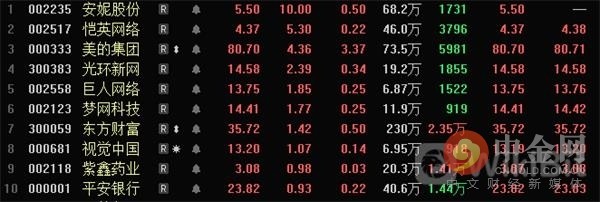 今日区块链50板块涨幅前10名:安妮股份、恺英网络、美的集团、光环新网、巨人网络、梦网科技、东方财富、视觉中国、馨子药业、平安银行。