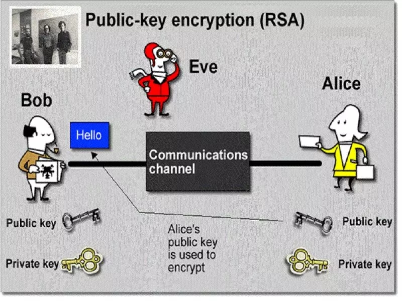 当 Bob 要向 Alice 传递信息时,那么 Bob 首先要获取 Alice 的公钥,然后 Bob 开始加密信息。