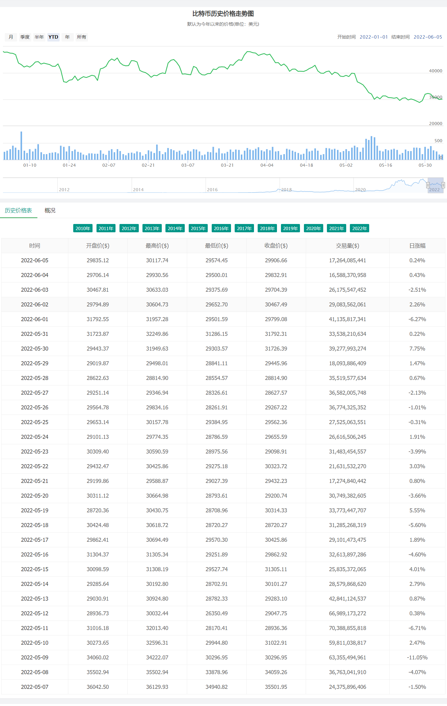 比特币10年历史价格走势图