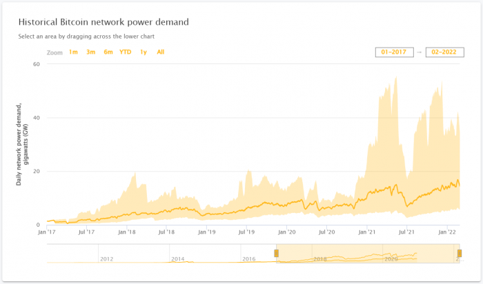 比特币网络历史能耗记录
